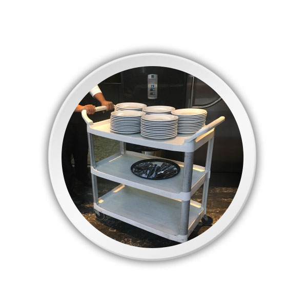 Carro de servicio para uso gastronómico y catering. Ideal para hoteles, cocinas, comedores, restaurantes, bares, etc.